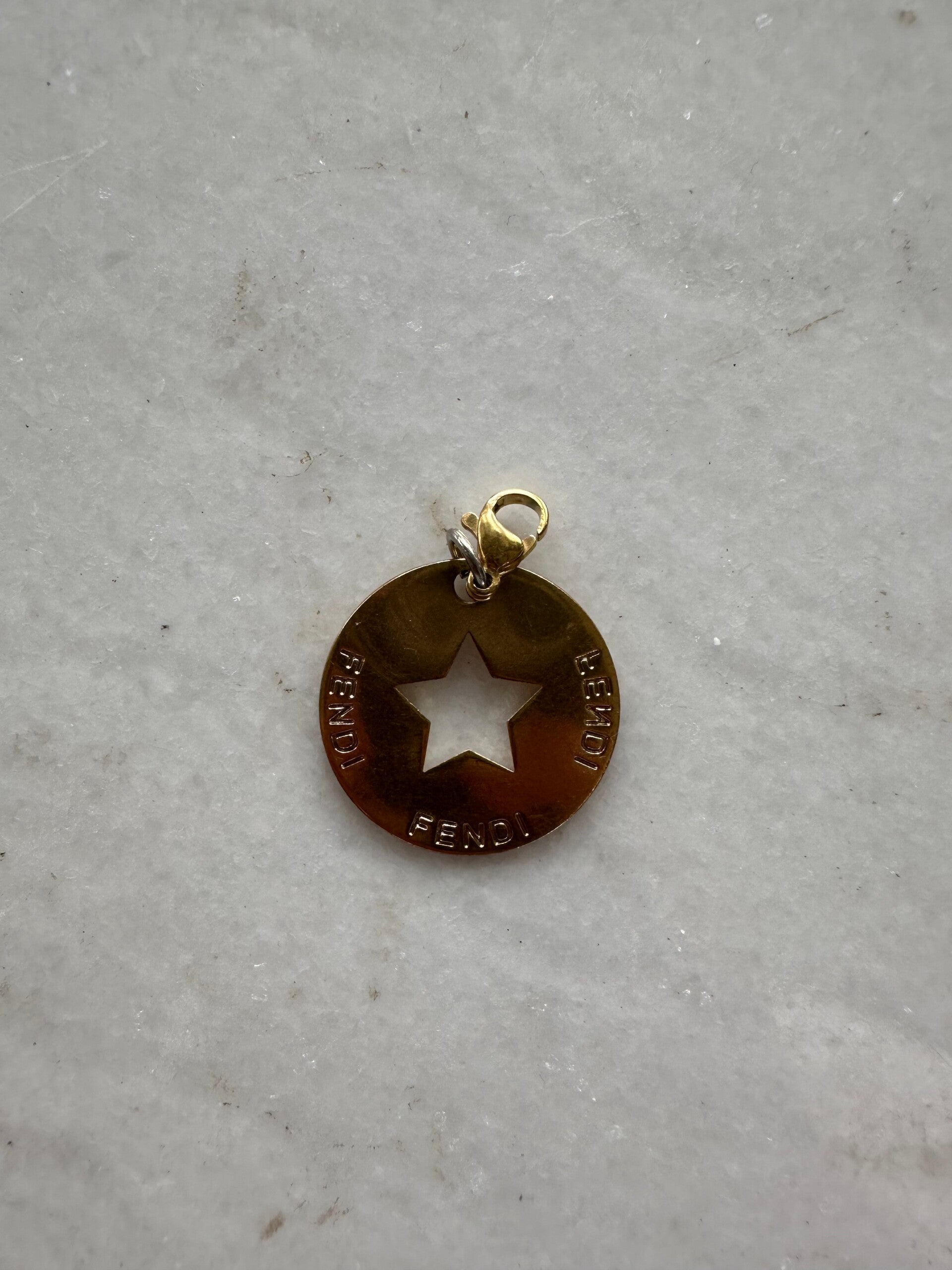 Fendi bedel ster. De bedel is vintage dus er kunnen gebruikssporen/ schade op zitten. De bedel word geleverd zonder ketting & is verguld.