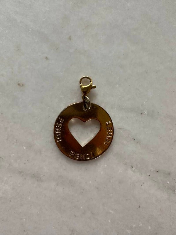 Fendi bedel hartje. De bedel is vintage dus er kunnen gebruikssporen/ schade op zitten. De bedel word geleverd zonder ketting & is verguld.