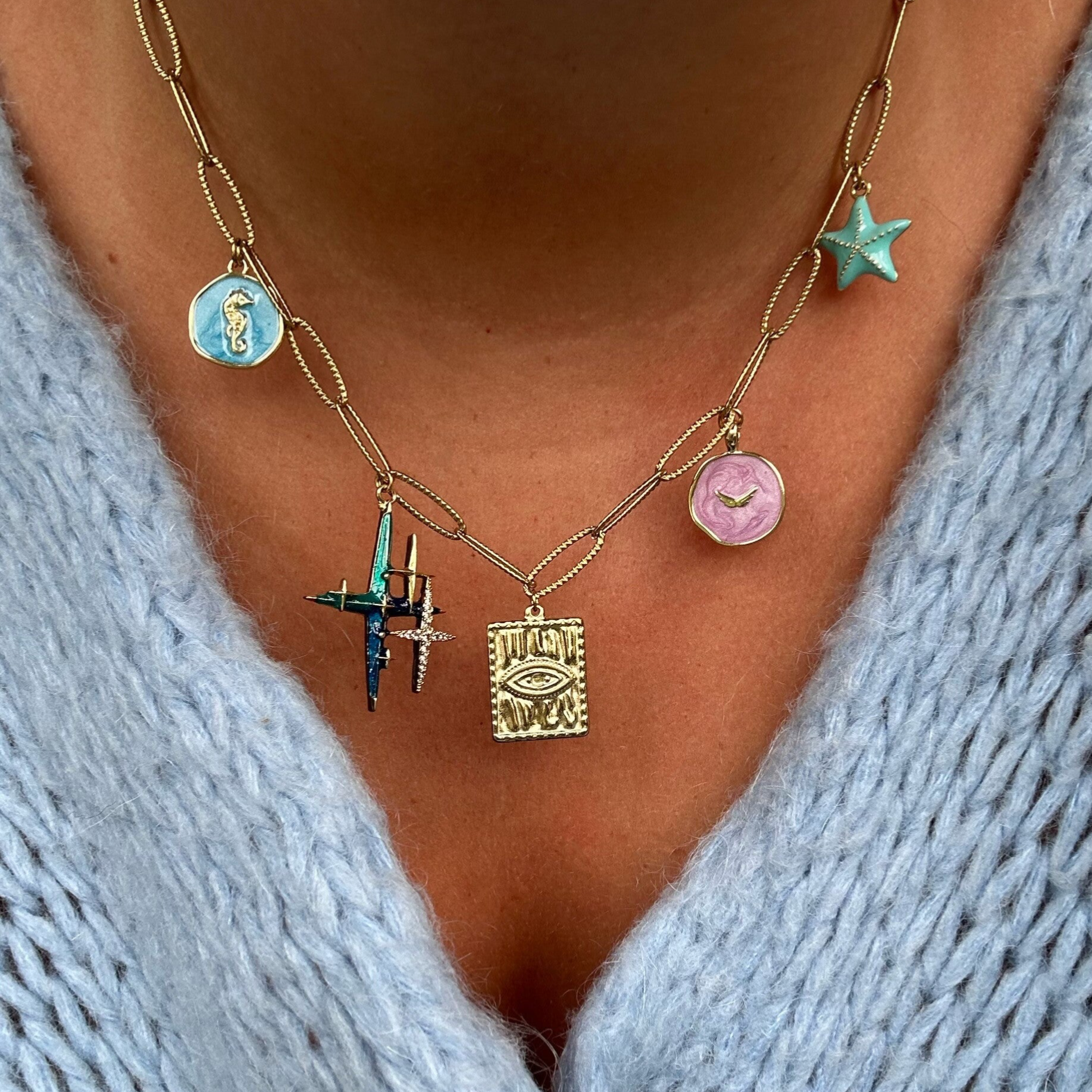 Mega leuke gouden charm necklace. De ketting is verstelbaar, RVS en past bij elke gelegenheid :)