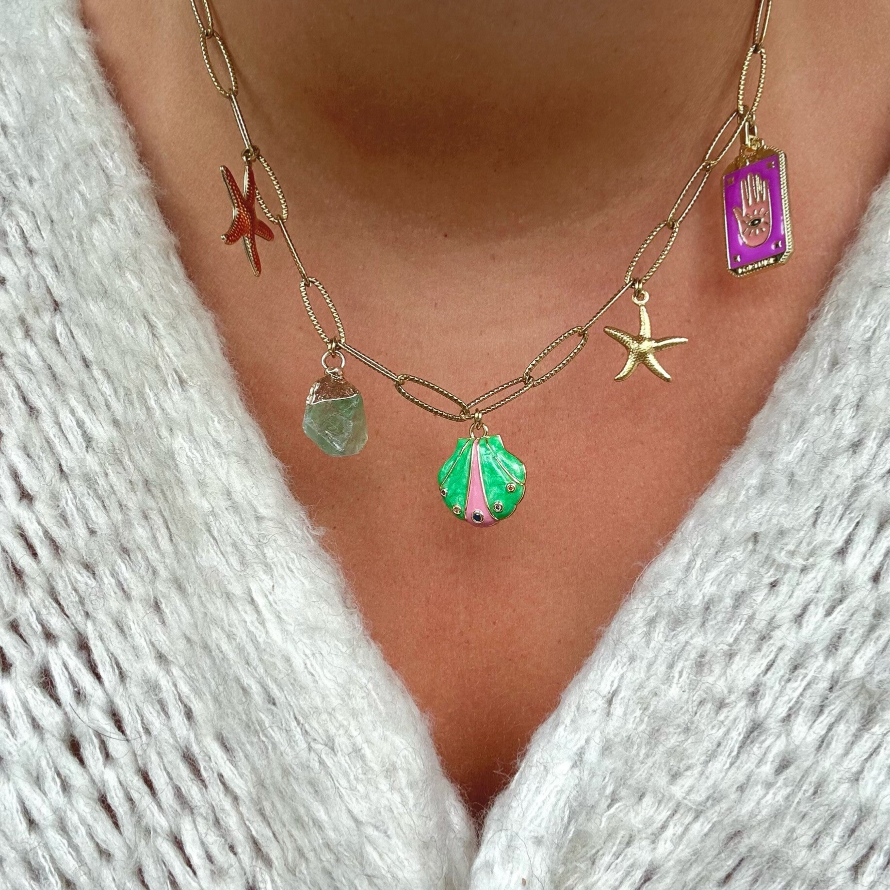 Mega leuke gouden charm necklace. De ketting is verstelbaar, RVS en past bij elke gelegenheid :)