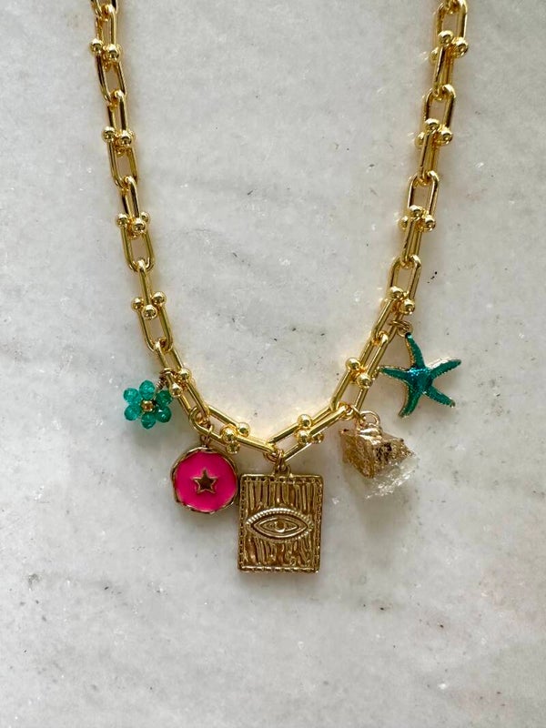 Mega leuke gouden charm necklace. De ketting is verstelbaar, RVS en past bij elke gelegenheid :)