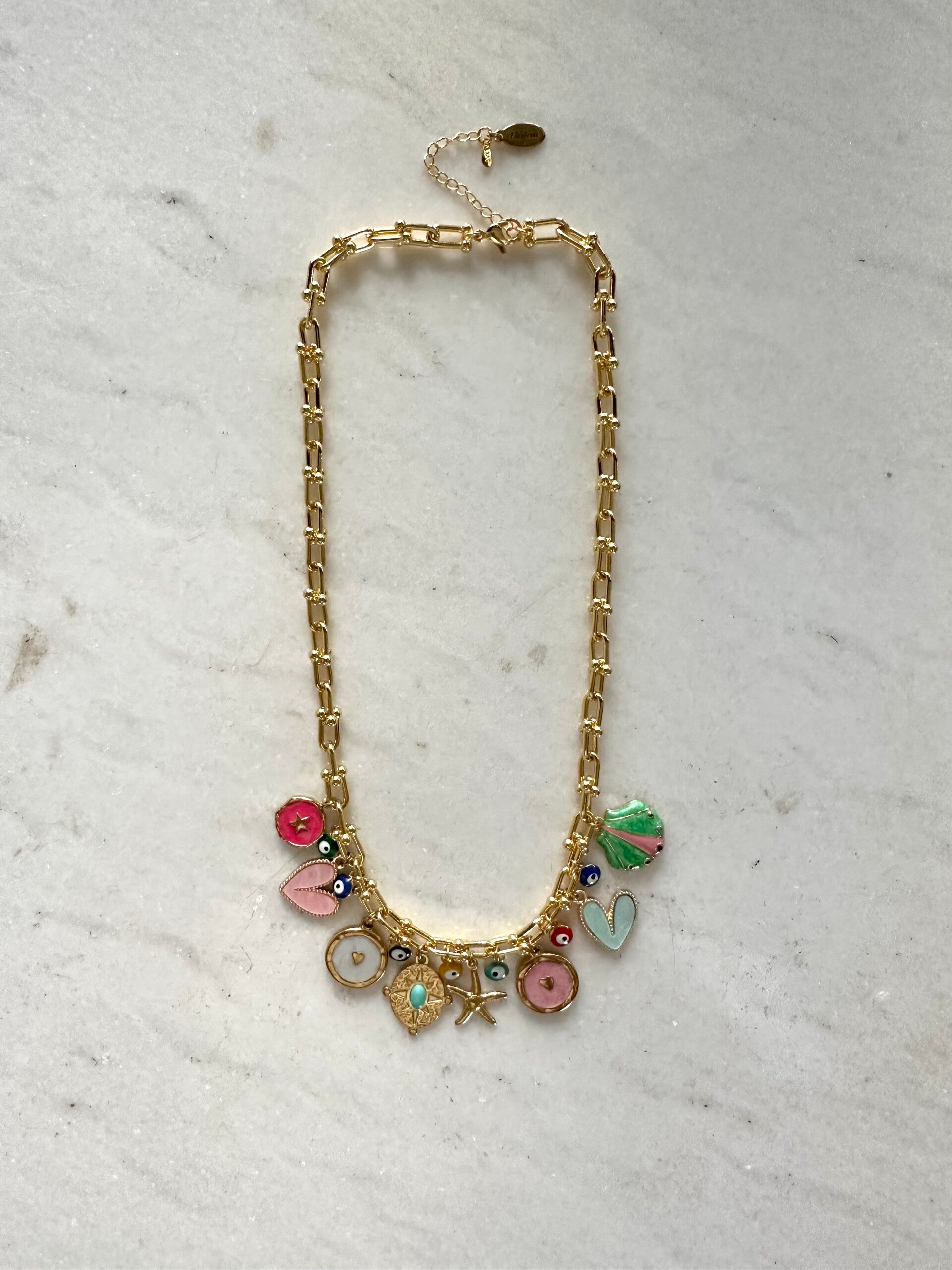 Mega leuke gouden charm necklace. De ketting is verstelbaar, RVS en past bij elke gelegenheid :)