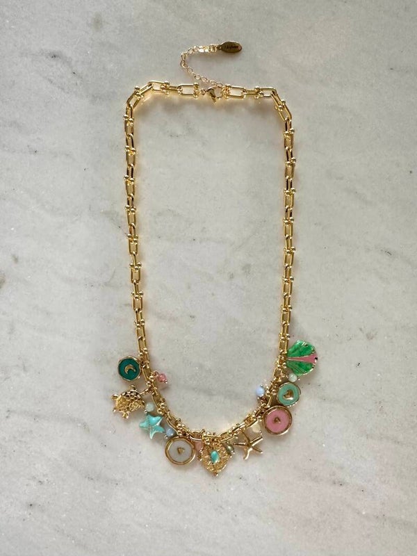 Mega leuke gouden charm necklace. De ketting is verstelbaar, RVS en past bij elke gelegenheid :)