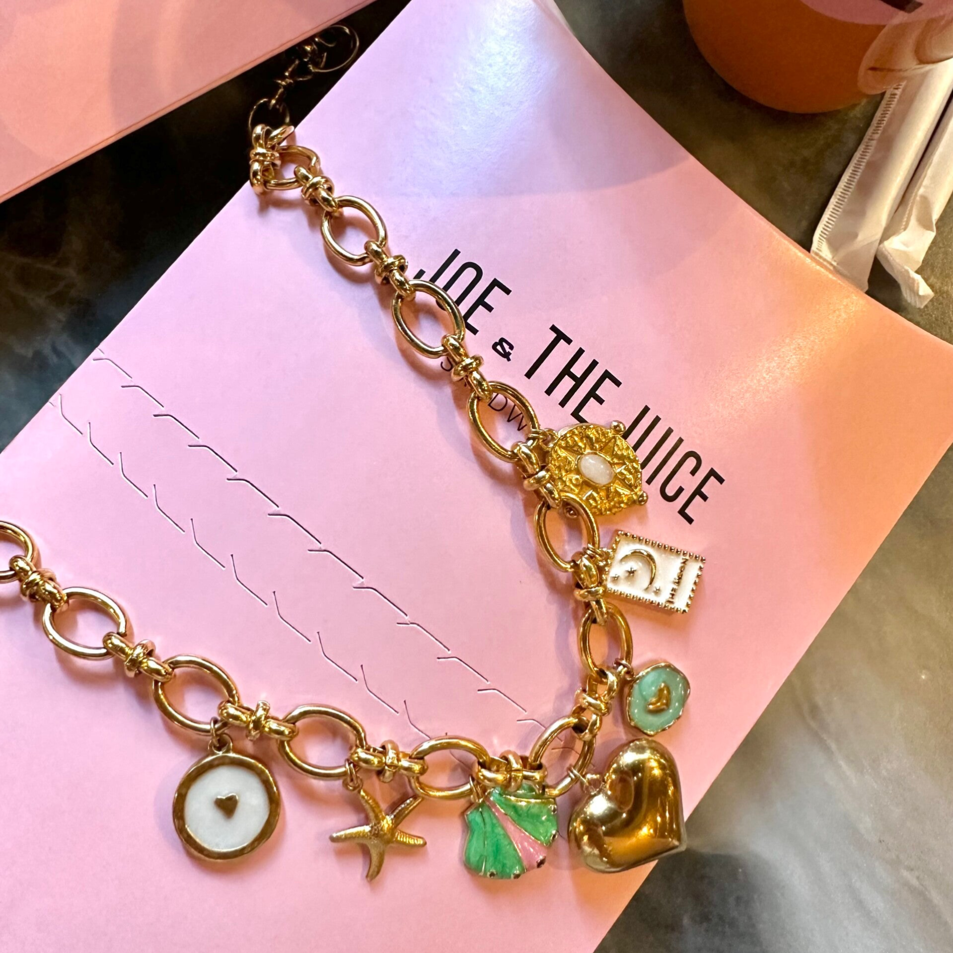 Mega leuke gouden charm necklace. De ketting is verstelbaar, RVS en past bij elke gelegenheid :)