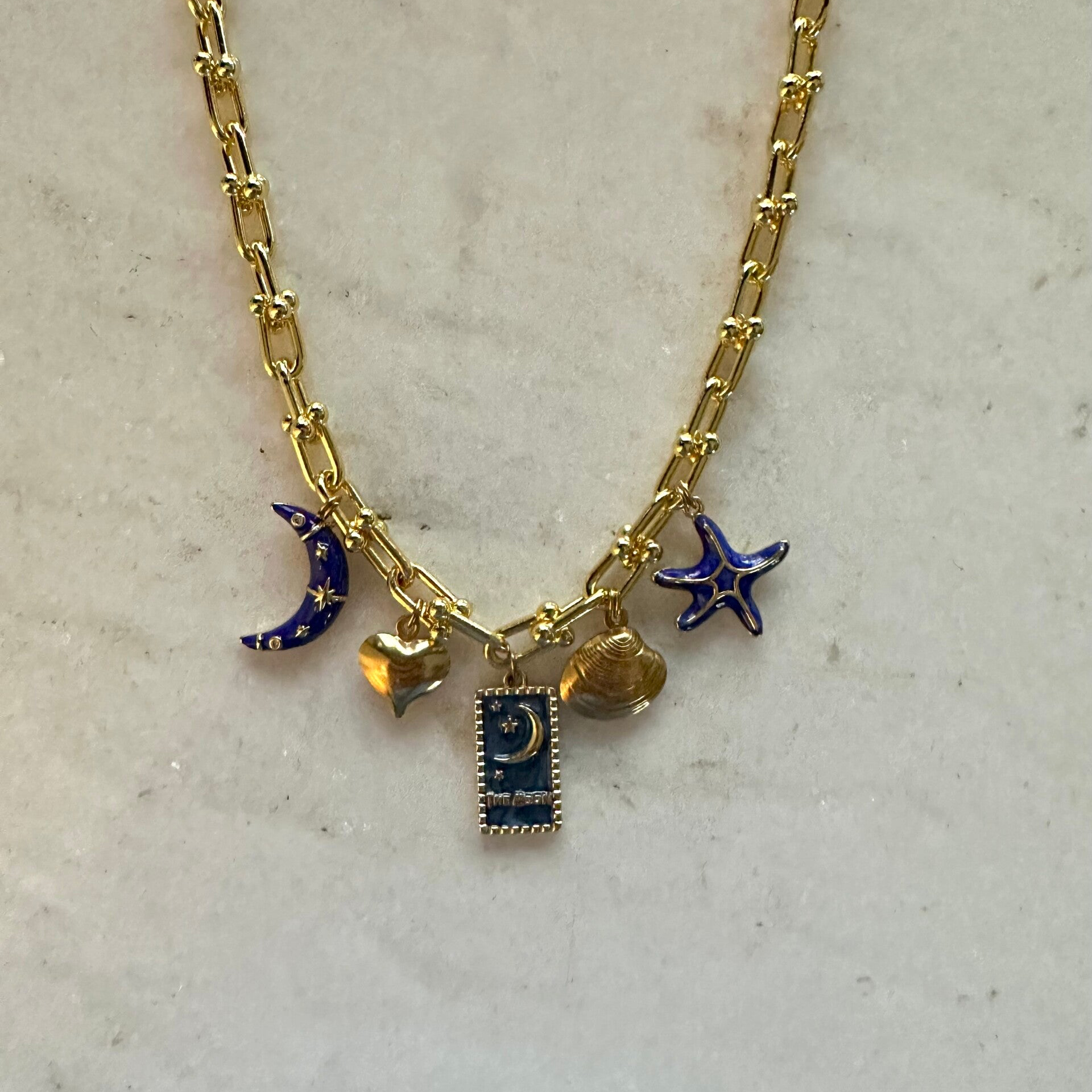 Mega leuke gouden charm necklace. De ketting is verstelbaar, RVS en past bij elke gelegenheid :)