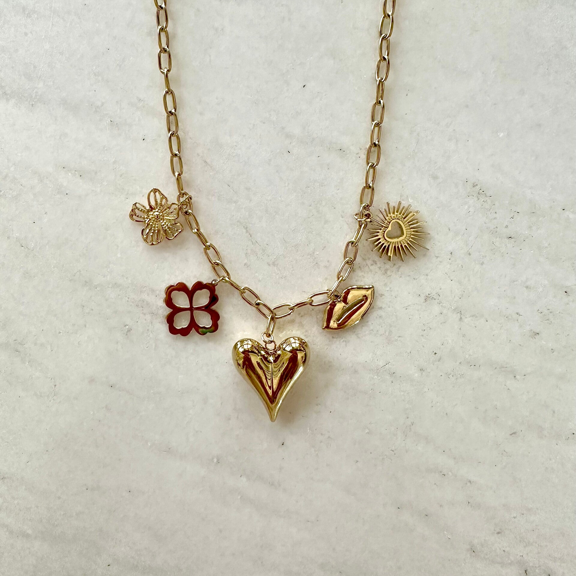 Mega leuke gouden charm necklace. De ketting is verstelbaar, RVS en past bij elke gelegenheid :)