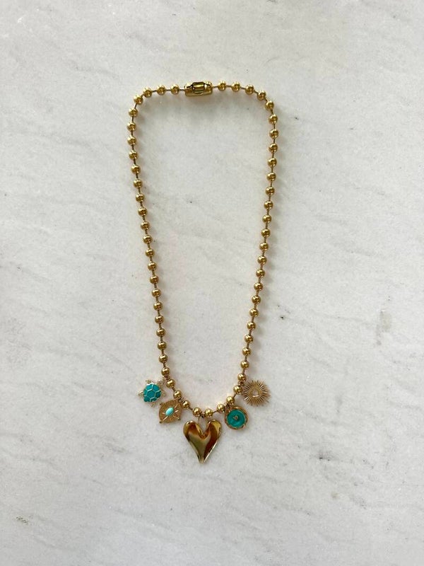 Mega leuke gouden charm necklace. De ketting is verstelbaar, RVS en past bij elke gelegenheid :)