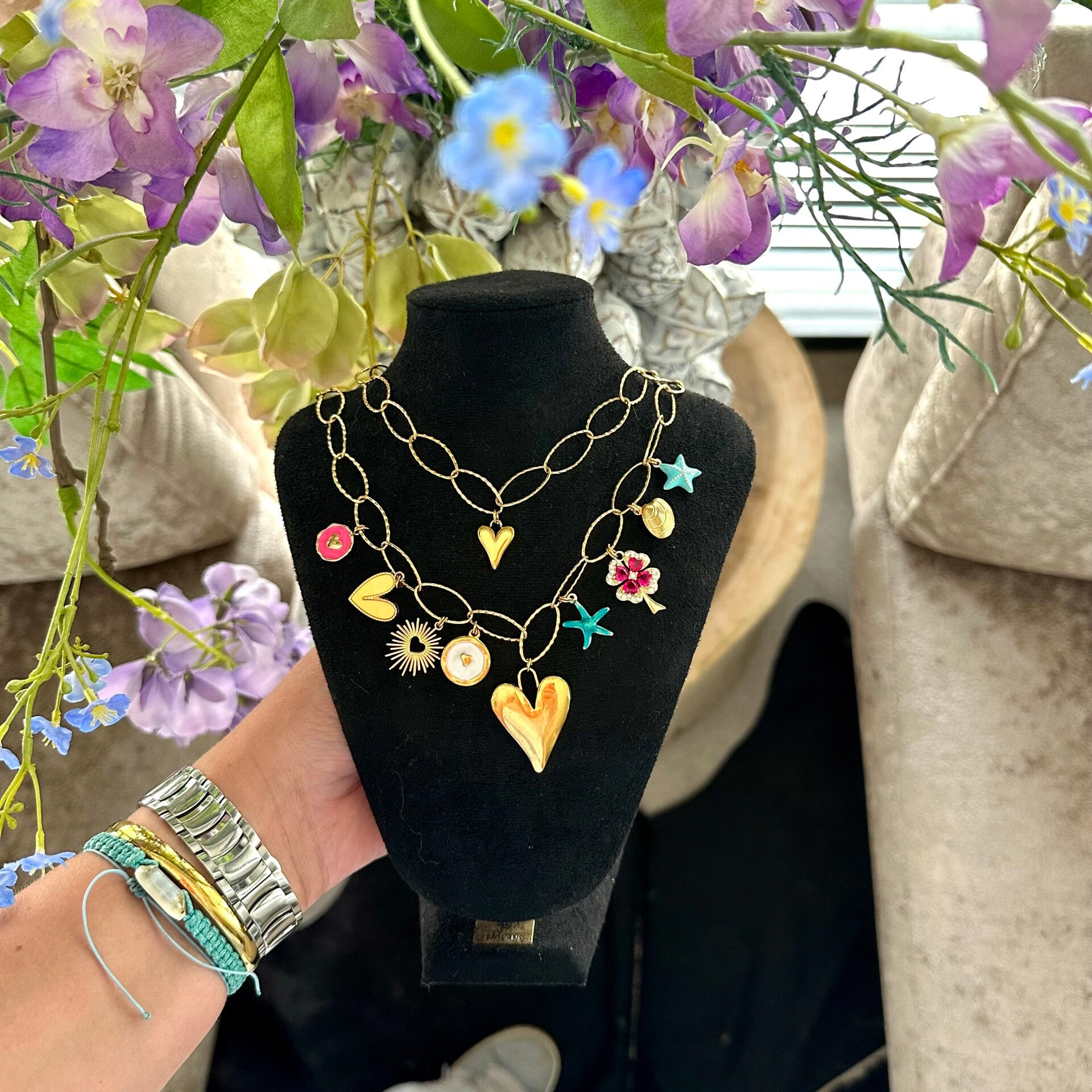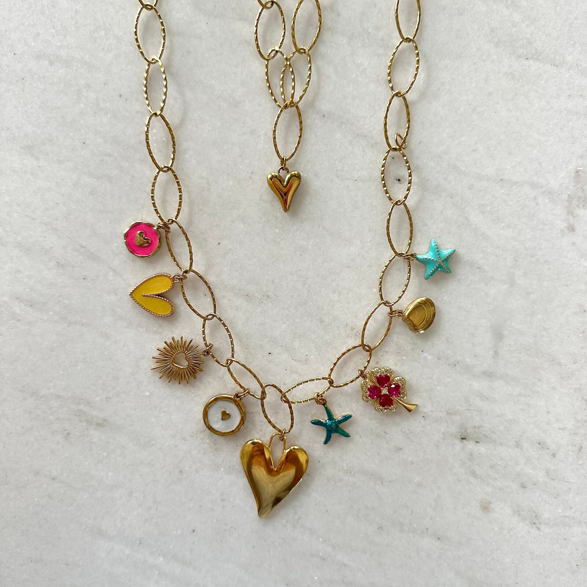 Mega leuke gouden charm necklace. De ketting is verstelbaar, RVS en past bij elke gelegenheid :)
