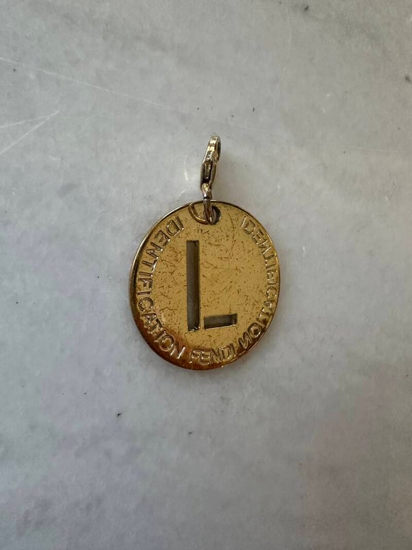 Fendi bedel letter L. De bedel is vintage dus er kunnen gebruikssporen/ schade op zitten. De bedel word geleverd zonder ketting & is verguld.