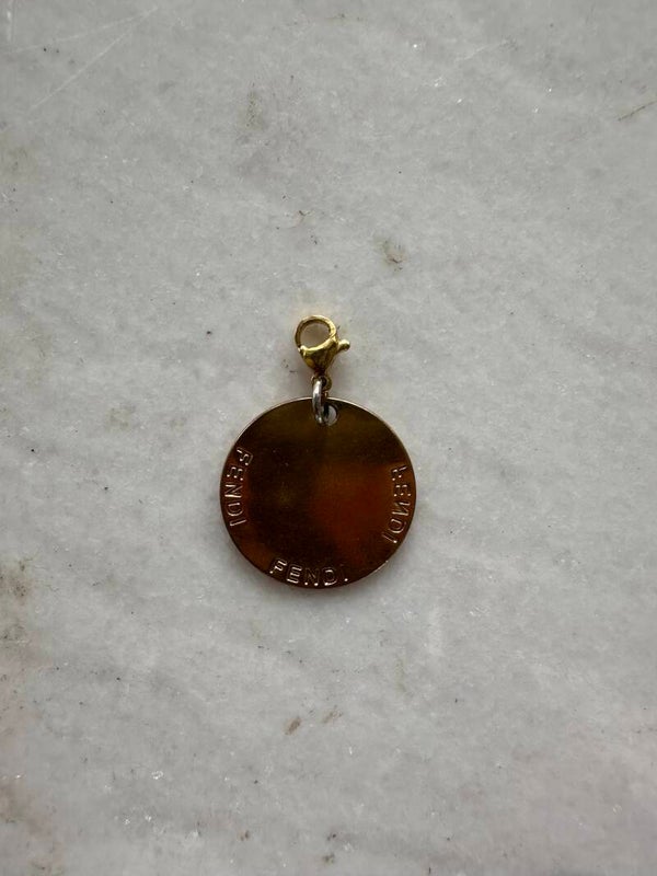 Fendi letter coin. De bedel is vintage dus er kunnen gebruikssporen/ schade op zitten. De bedel word geleverd zonder ketting & is verguld.