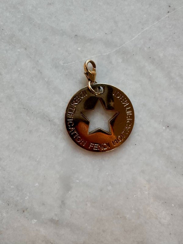 Fendi bedel ster . De bedel is vintage dus er kunnen gebruikssporen/ schade op zitten. De bedel word geleverd zonder ketting.