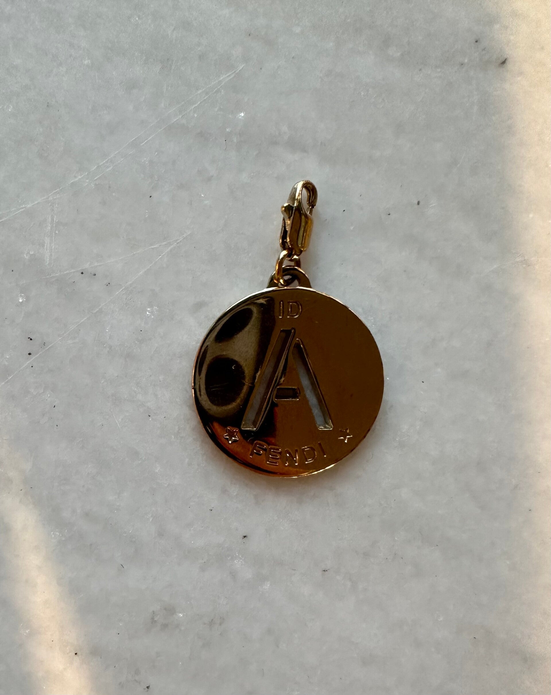 Fendi bedel letter A. De bedel is vintage dus er kunnen gebruikssporen/ schade op zitten. De bedel word geleverd zonder ketting.